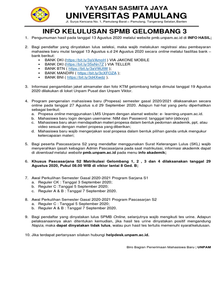 Tidak Lulus Tes Unpam / Pmb Online / Check spelling or type a new query.. Check spelling or type a new query. We did not find results for: Maybe you would like to learn more about one of these?